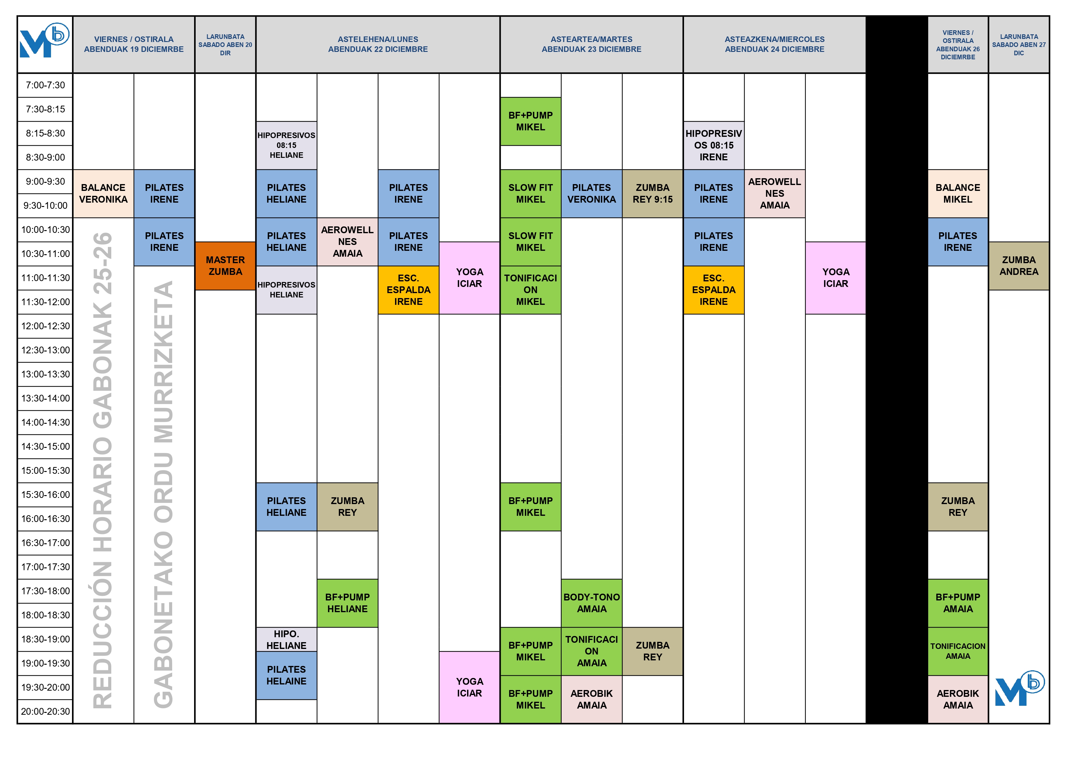 2025ko Aste Santuko Kirol Ekintzen ordutegiaren murrizketa.