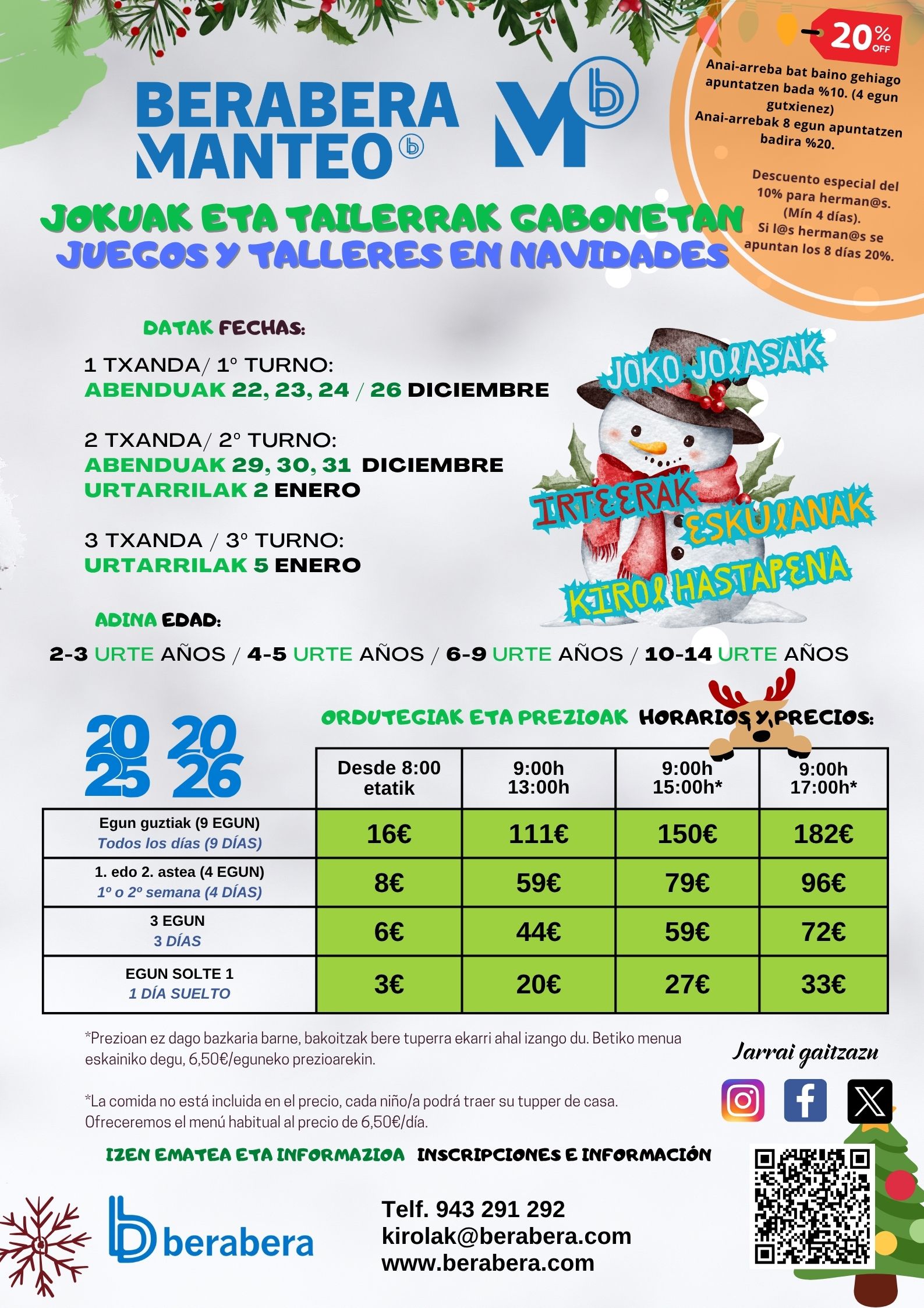 ON LINE: recomendamos utilizar la aplicación Manteo Bera Bera (APP ANDROID - APP APPLE) que cada vez os será de mayor utilidad o la página WEB. Quienes no podáis realizar la inscripción de este modo, lo podréis realizar por teléfono 943 291292 , enviando un correo electrónico a