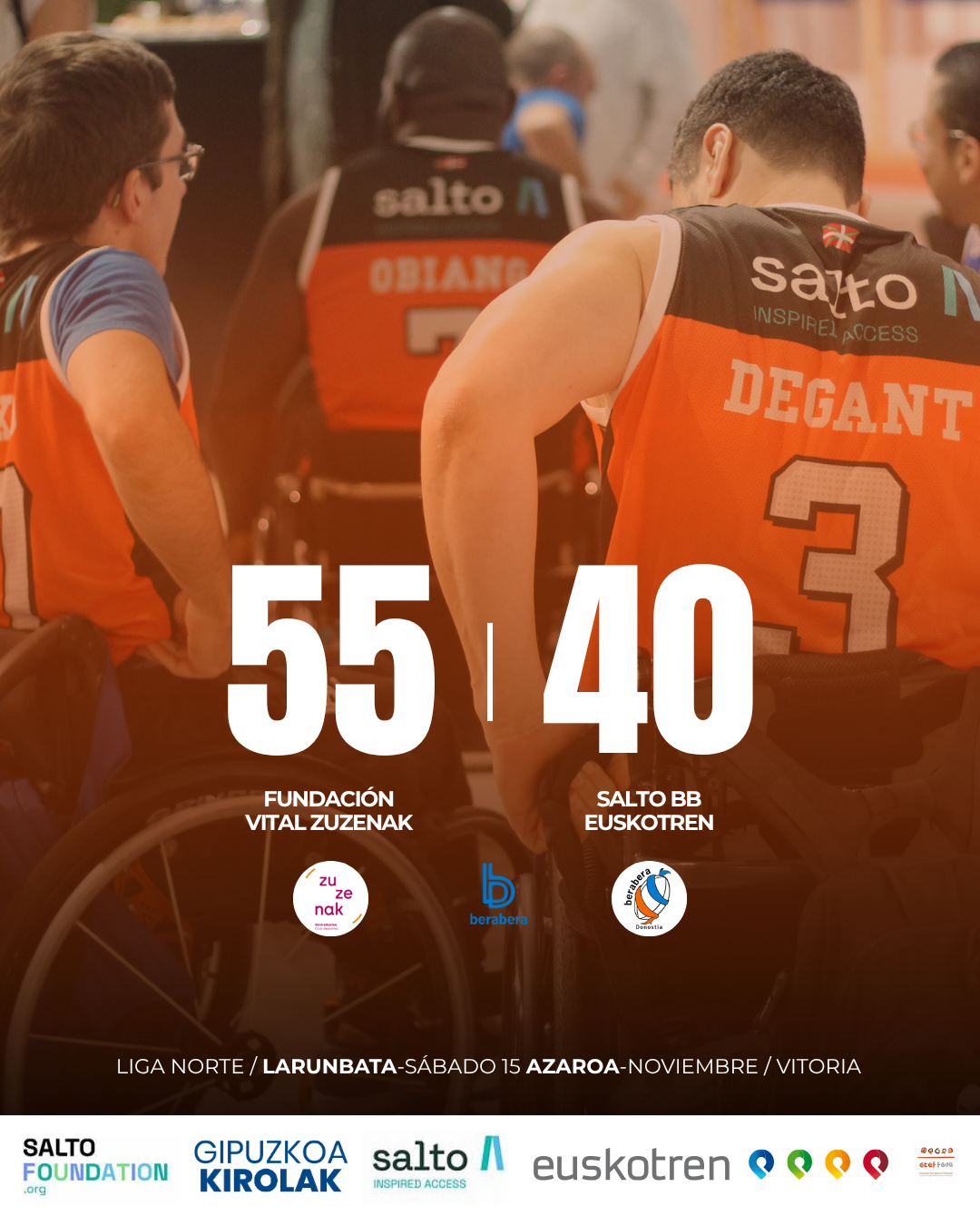 Partído complicado, con falta de rotaciones, pero el Salto Bera Bera Euskotren lo ha dado todo en la pista, enhorabuena por este gran partido y a seguir trabajando duro.