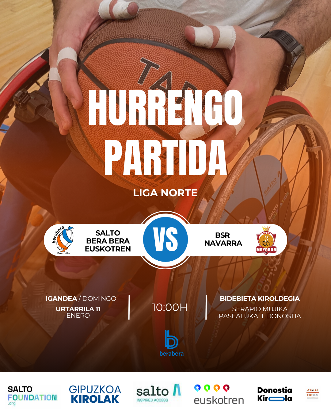 Partido importante para nuestro equipo SALTO BB Euskotren, en el que recibe al equipo de Navarra con la intención de seguir siendo fuertes en nuestra pista.