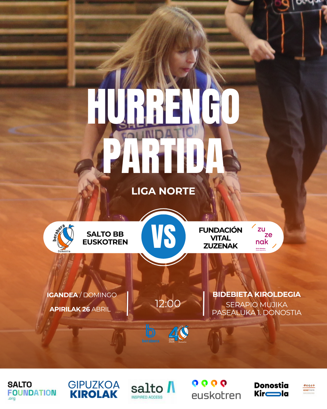 Os esperamos a todos este próximo domingo a las 12h en el polideportivo de Bidebieta.