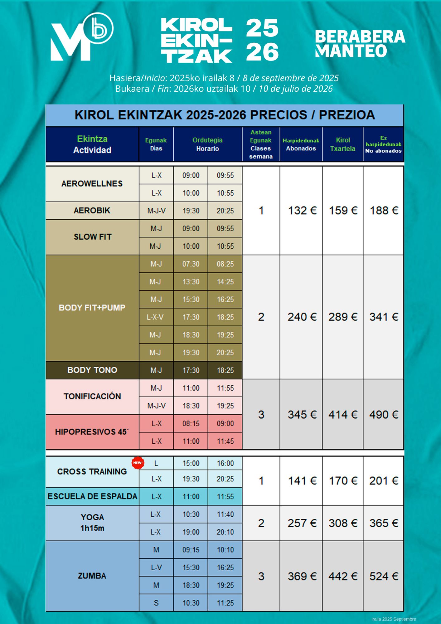 ON LINE: recomendamos utilizar la aplicación Manteo Bera Bera (APP ANDROID - APP APPLE) que cada vez os será de mayor utilidad o la página WEB. Quienes no podáis realizar la inscripción de este modo, lo podréis realizar por teléfono 943 291292 , enviando un correo electrónico a