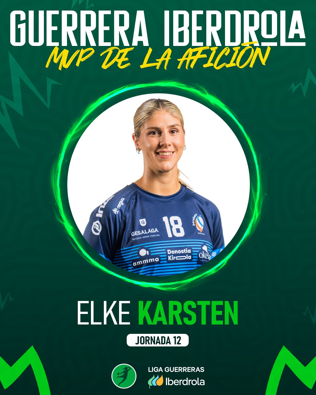 La Federación Española de Balonmano, tras la deliberación del comité de expertos del área femenina, ha designado a Elke Karsten y Lyndie Tchaptchet como Jugadoras Iberdrola de la 12ª y 13ª jornadas de la Liga Guerreras Iberdrola, es decir, un doble MVP para super amara Bera Bera para cerrar un histórico 2025.