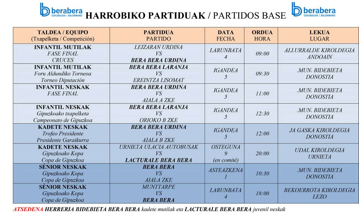Hurrengo partidak / Próximos partidos: