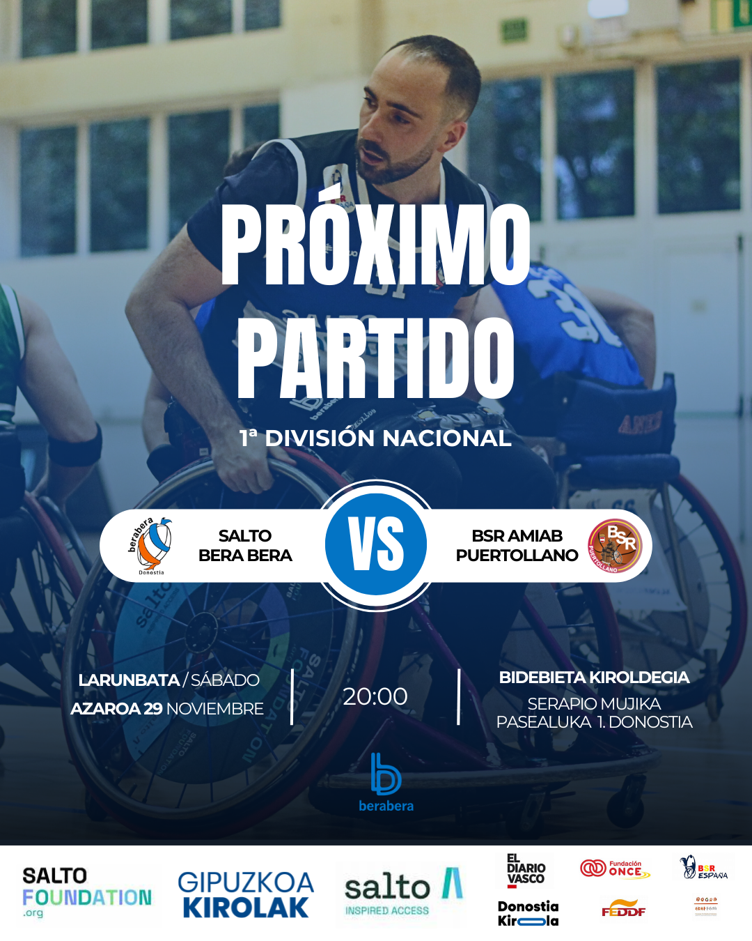 Salto Bera Bera afronta este sábado un duelo determinante ante Puertollano en la Primera División Nacional de Baloncesto en Silla de Ruedas. Puertollano, descendido la pasada temporada desde la Superliga, es un rival habitual para Salto y llega en un gran momento: ha ganado los tres partidos disputados hasta la fecha y mantiene el impulso competitivo tras proclamarse campeón de la Copa BSR el curso pasado. El equipo cuenta con jugadores de gran experiencia como Zavala y Alberto Brox, los dos jugadores más experimentados de BSR Amiab Puertollano.
